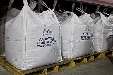 EPS’ LG50 angular steel grit is delivered in these 2-ton sacks.