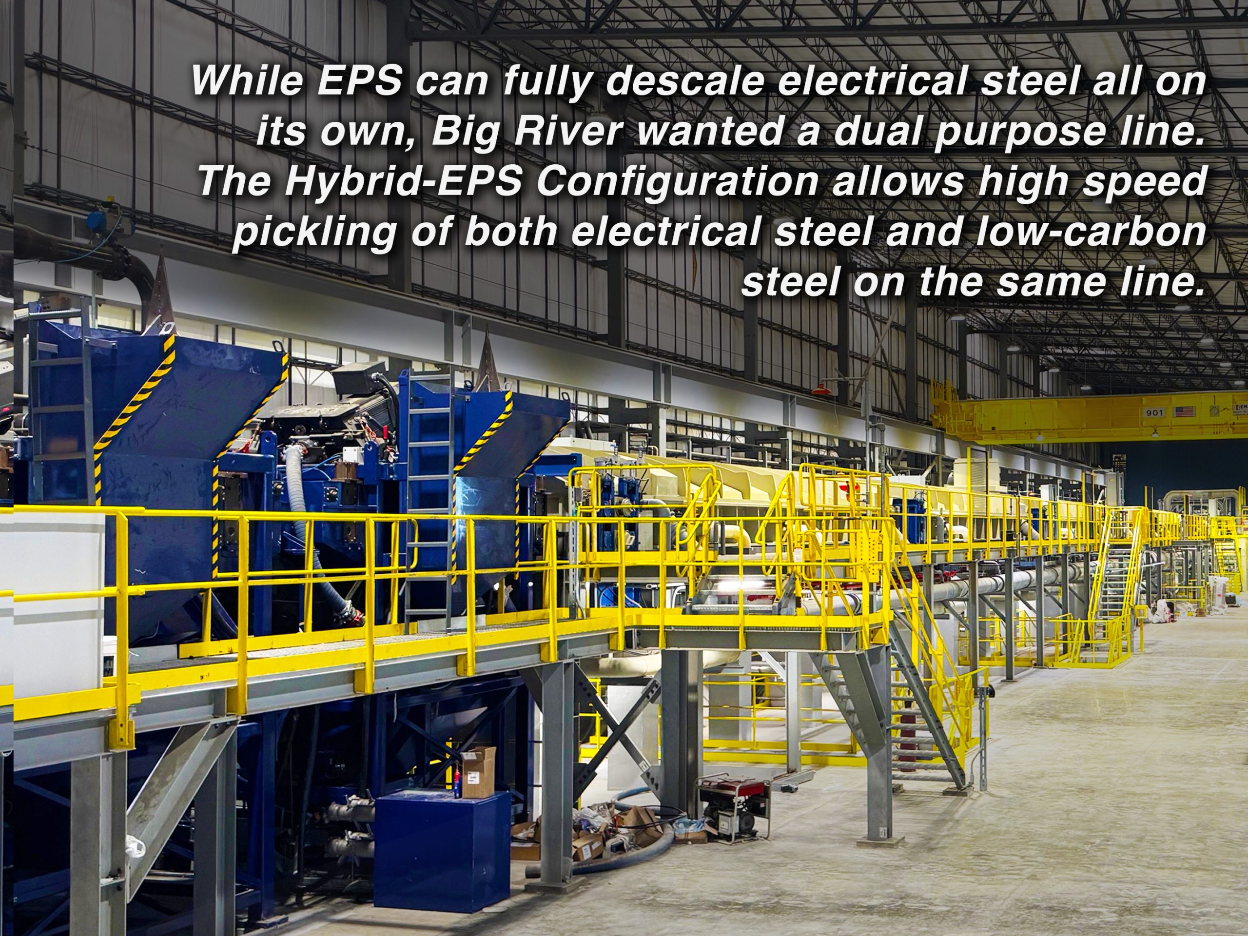 “Electrical steel is especially difficult to pickle. We knew EPS could descale electrical steel as a standalone process, but for our situation, employing EPS in a hybrid configuration together with acid made sense. This hybrid line can pickle both low-carbon and electrical steel at higher speeds. Big River is proud to be the first mill with a more environmentally friendly hybrid EPS-acid line for electrical steel.”